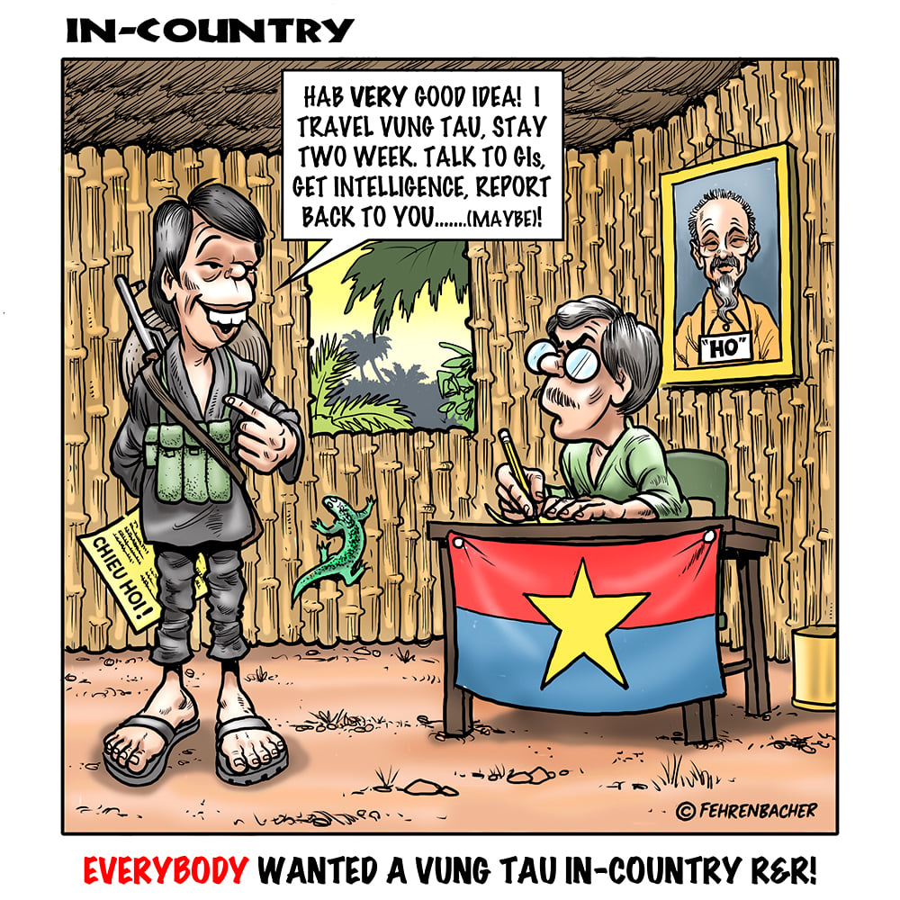 Phil enlisted in the Army in 1965 where he served for years in Vietnam.  He became a graphic designer and has worked for the state of Oregon for 26 years.  He retired in 2003 and started the Cartoon "In-Country".  The cartoons reflect his experiences during his tour of duty in South Vietnam.